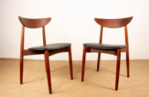 Paire chaises Danoises en Teck et Skaï neuf par Harry Ostergaard pour Randers Møbelfabrik 1960.