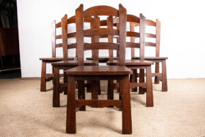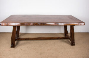 Conçu en 1946 pour la collection « NV » de la marque danoise Niels Vodder, le fauteuil se distingue par ses lignes élégantes et son confort exceptionnel. Il combine des formes organiques et fluides avec une structure en bois sculptée, souvent en noyer ou en teck, et un rembourrage qui évoque l’artisanat du design danois de l’époque.