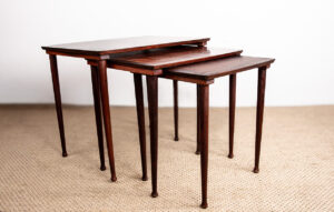Série de trois tables Gigognes Danoise en Teck et cannage par Erling Torvits pour Heltborg Mobler 1960.
