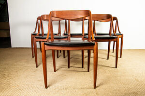 Série de 6 chaises Danoises en Teck et Skaï, modèle 16 par Johannes Andersen pour Uldum Mobelfabrik 1965.