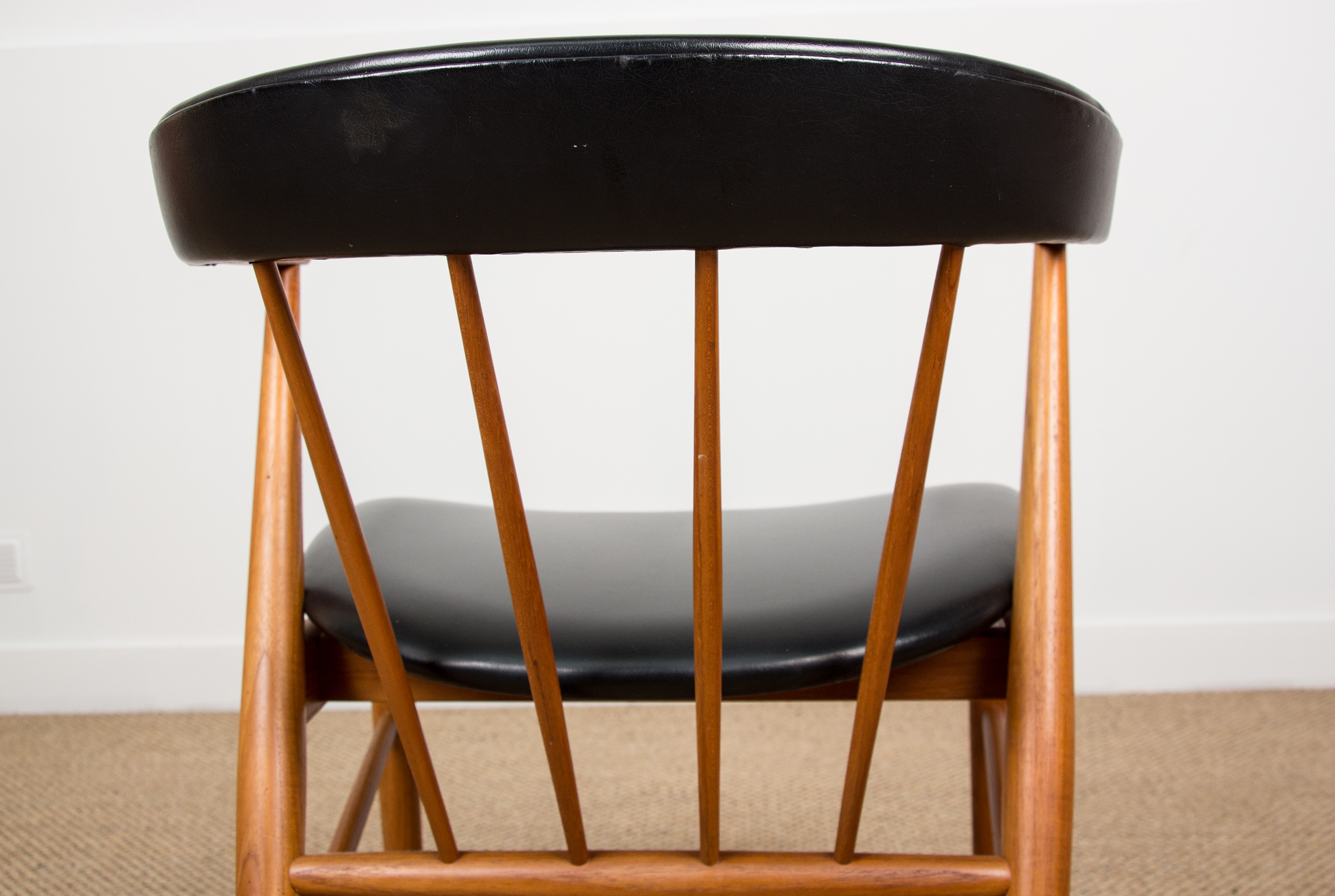 Fauteuil Danois en teck et skaï par Helge Sibast pour Sibast 1955.