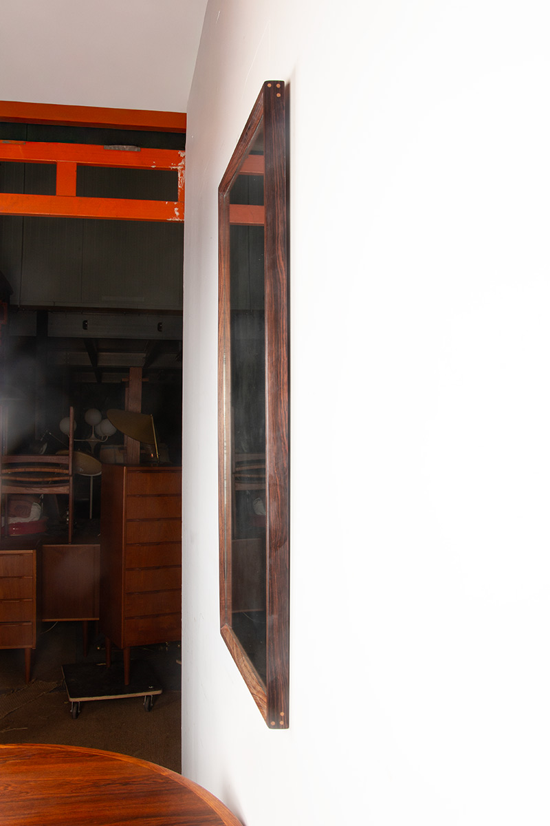 Descriptif : Magnifique grand miroir Scandinave. Objet, hyper élégant et de très belle qualité de fabrication, remarquez le travail d’incrustation du Palissandre. Acheté en 1960 à la Boutique Danoise sur les Champs Elysées à Paris.