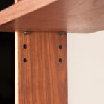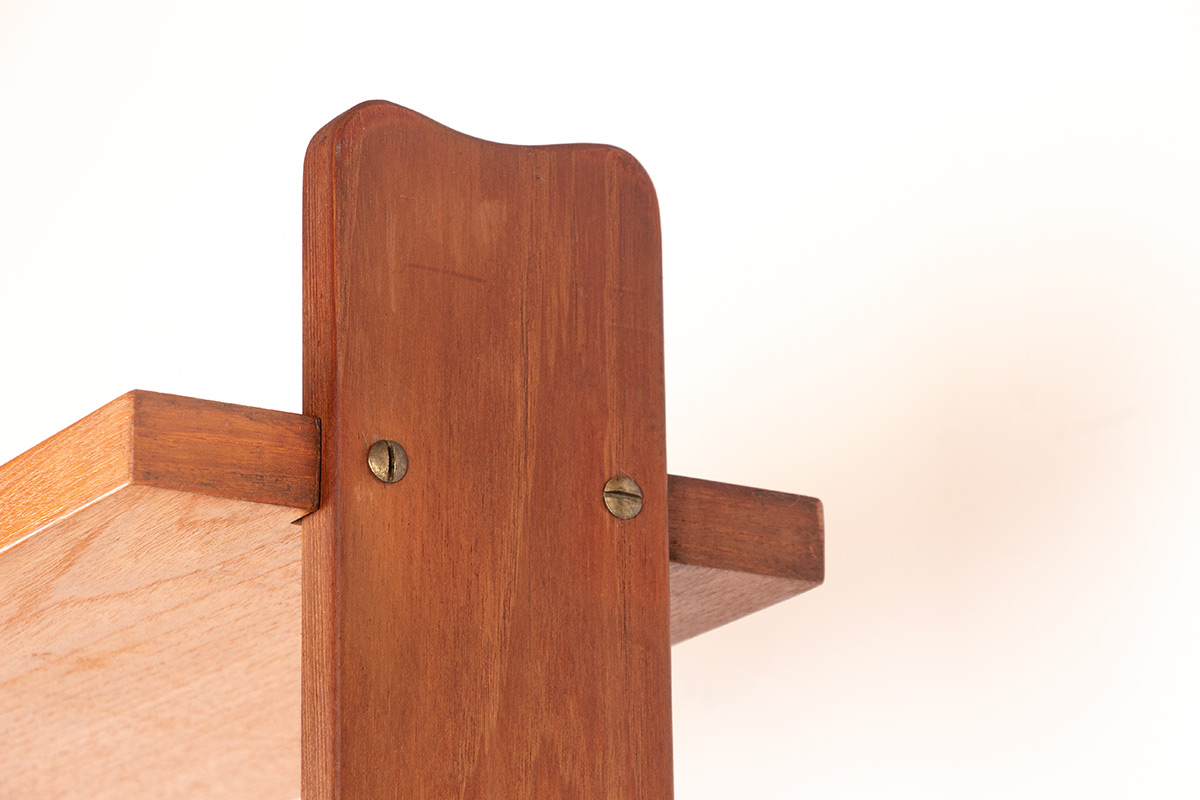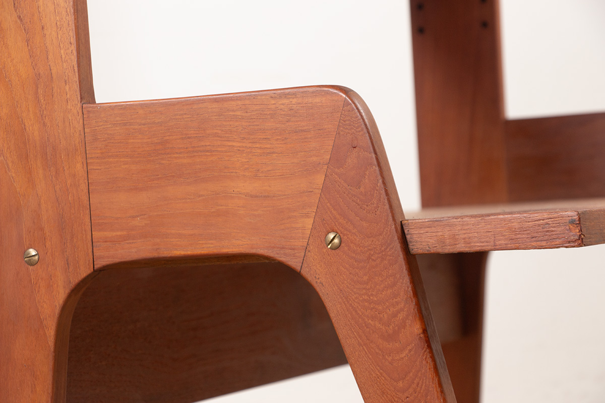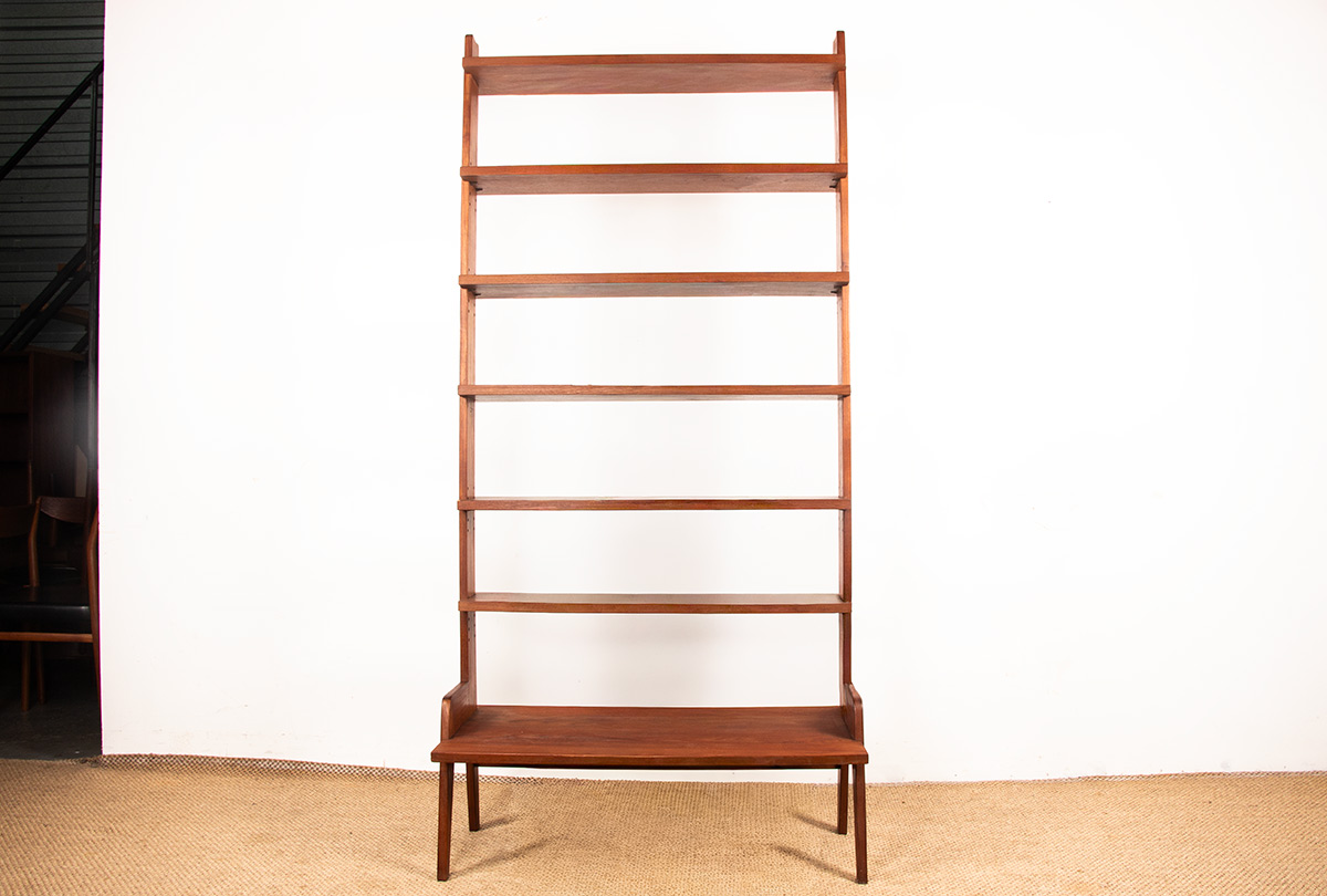 Descriptif : Superbe étagère ou bibliothèque Scandinave. 6 étagères (dont 4 réglables) ainsi qu’une 7eme, plus grande, à la base, offrent une belle capacité de rangement. Meuble très fonctionnel, hyper élégant et de très belle qualité de fabrication (belles vis en laiton). Une production des années 1950 du Designer Français, René Jean Caillette, se rapproche beaucoup de ce meuble.