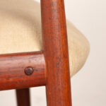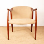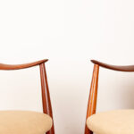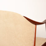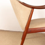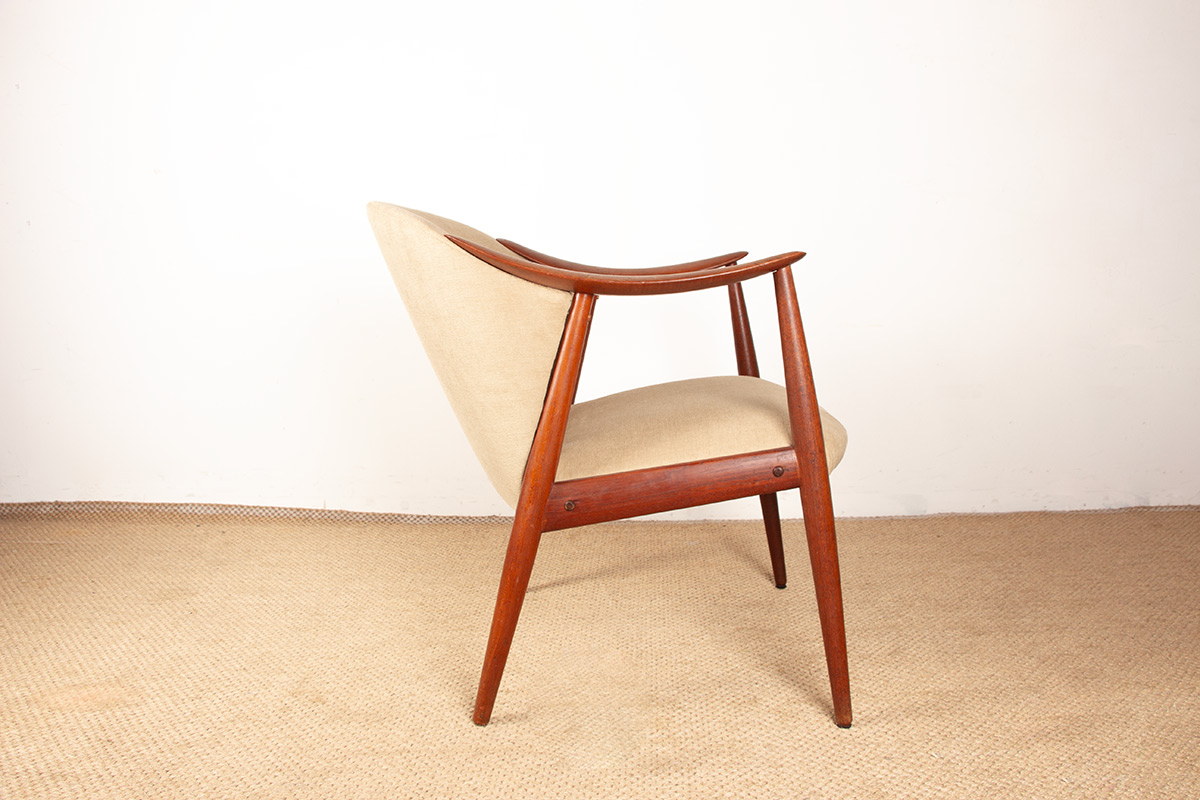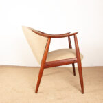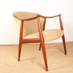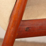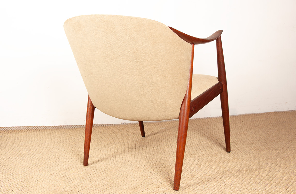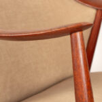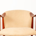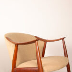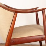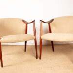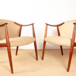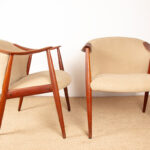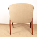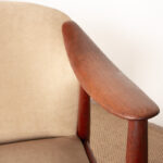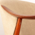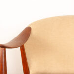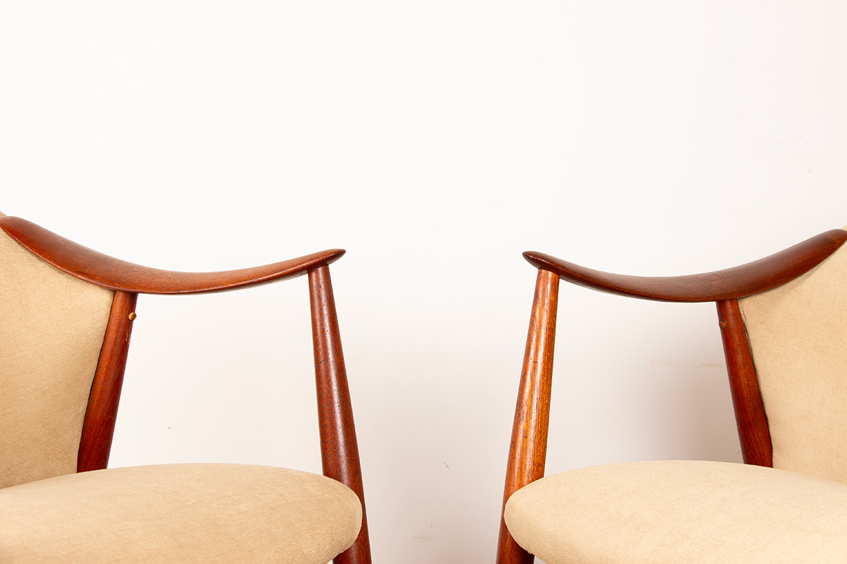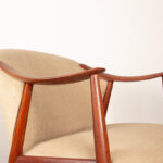 Descriptif : Superbes fauteuils ou Bergères, Chauffeuses, avec une structure en teck massif marqué par des accoudoirs incurvés et recouvert d’un tissu dans les beiges neuf.