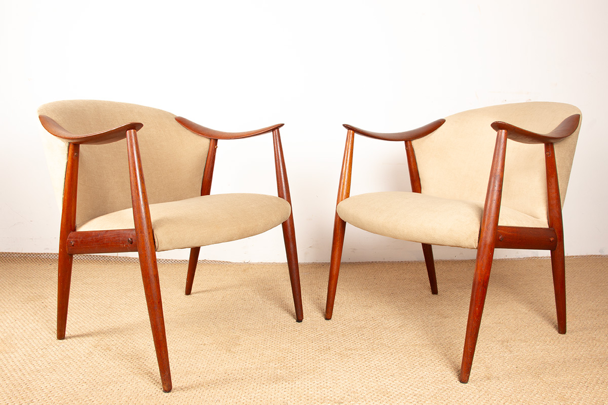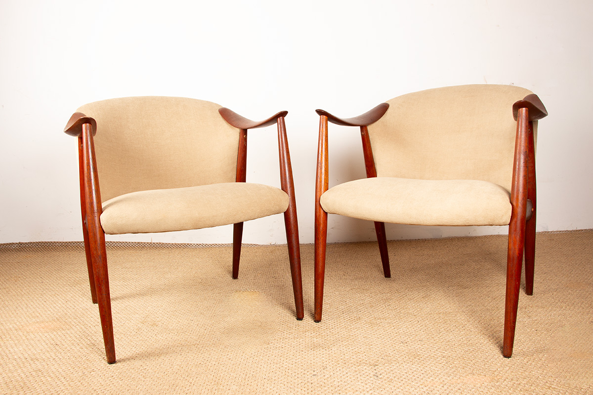 Paire de fauteuils Scandinaves en Teck et Tissu neuf modèle Tyrol par Gerhard Berg pour Westnofa 1960.