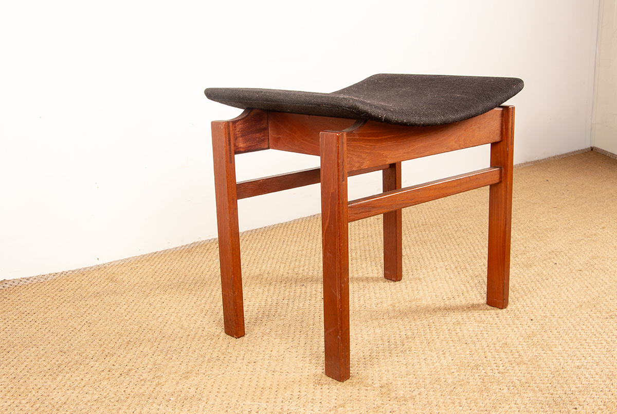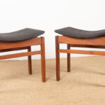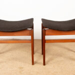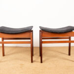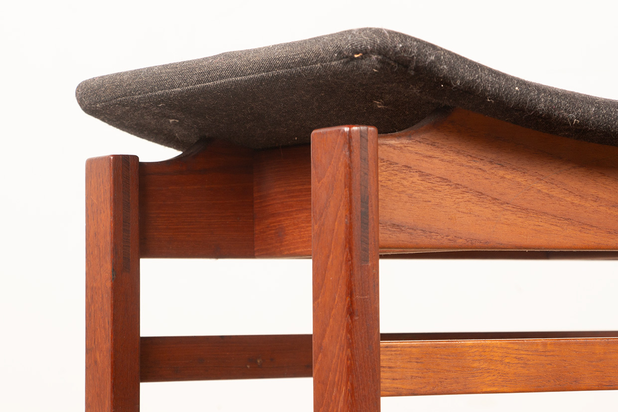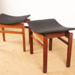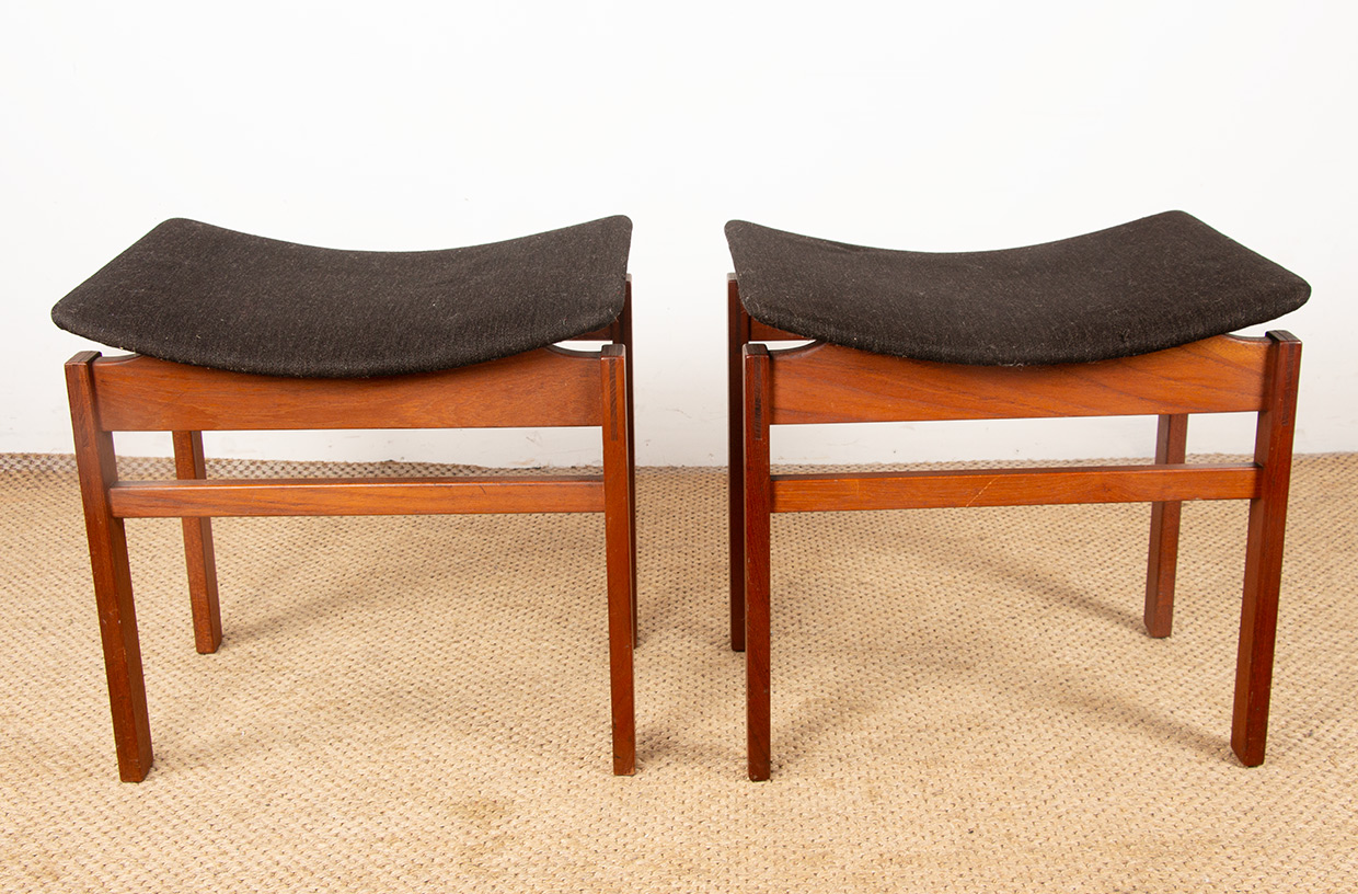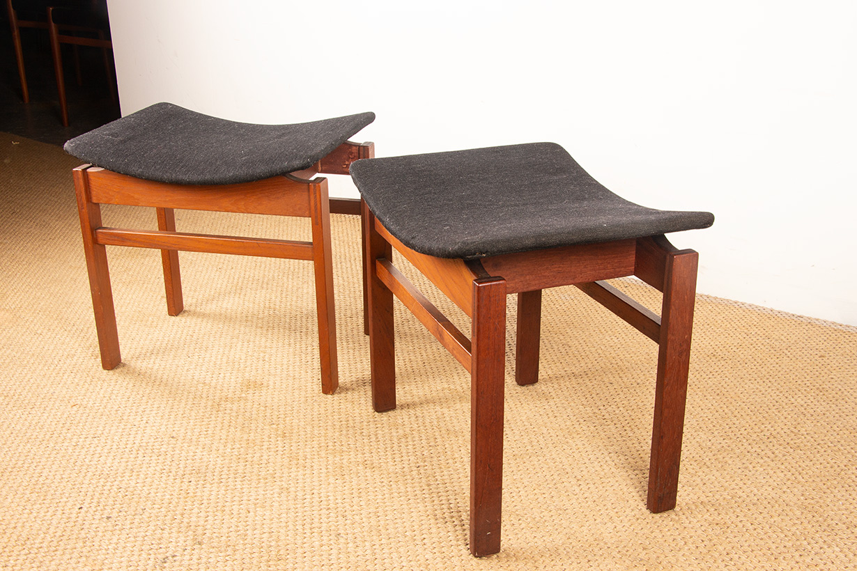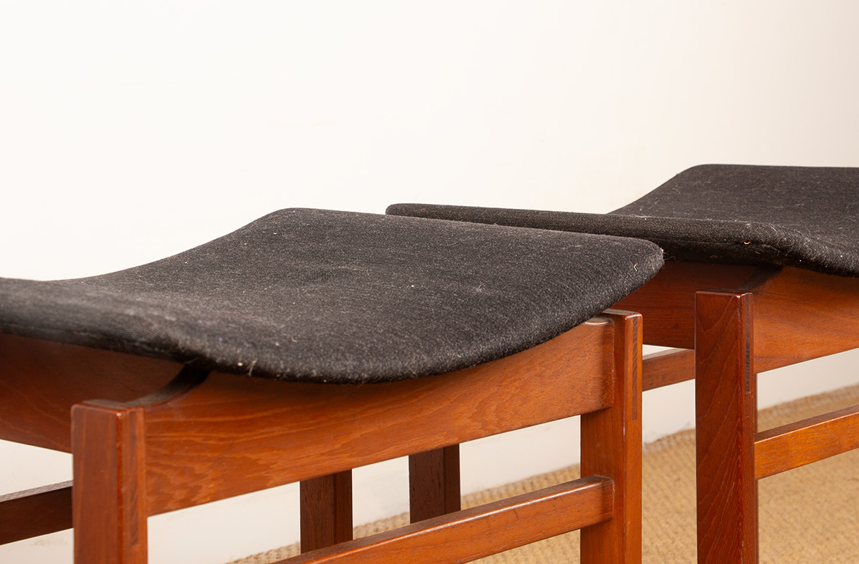 Paire de tabourets Danois en Teck massif et Tissu modèle 193 par Inger Klingenberg pour France & Daverkosen 1960.