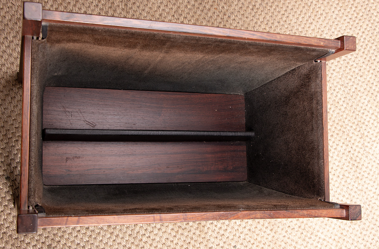 Descriptif : Très joli porte-revues Scandinave. Petit meuble particulièrement fonctionnel de très belle facture en excellent état. Deux planches de palissandre sont posées au fond pour assurer la rigidité et l’écartement.