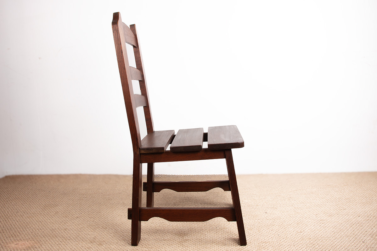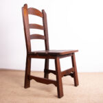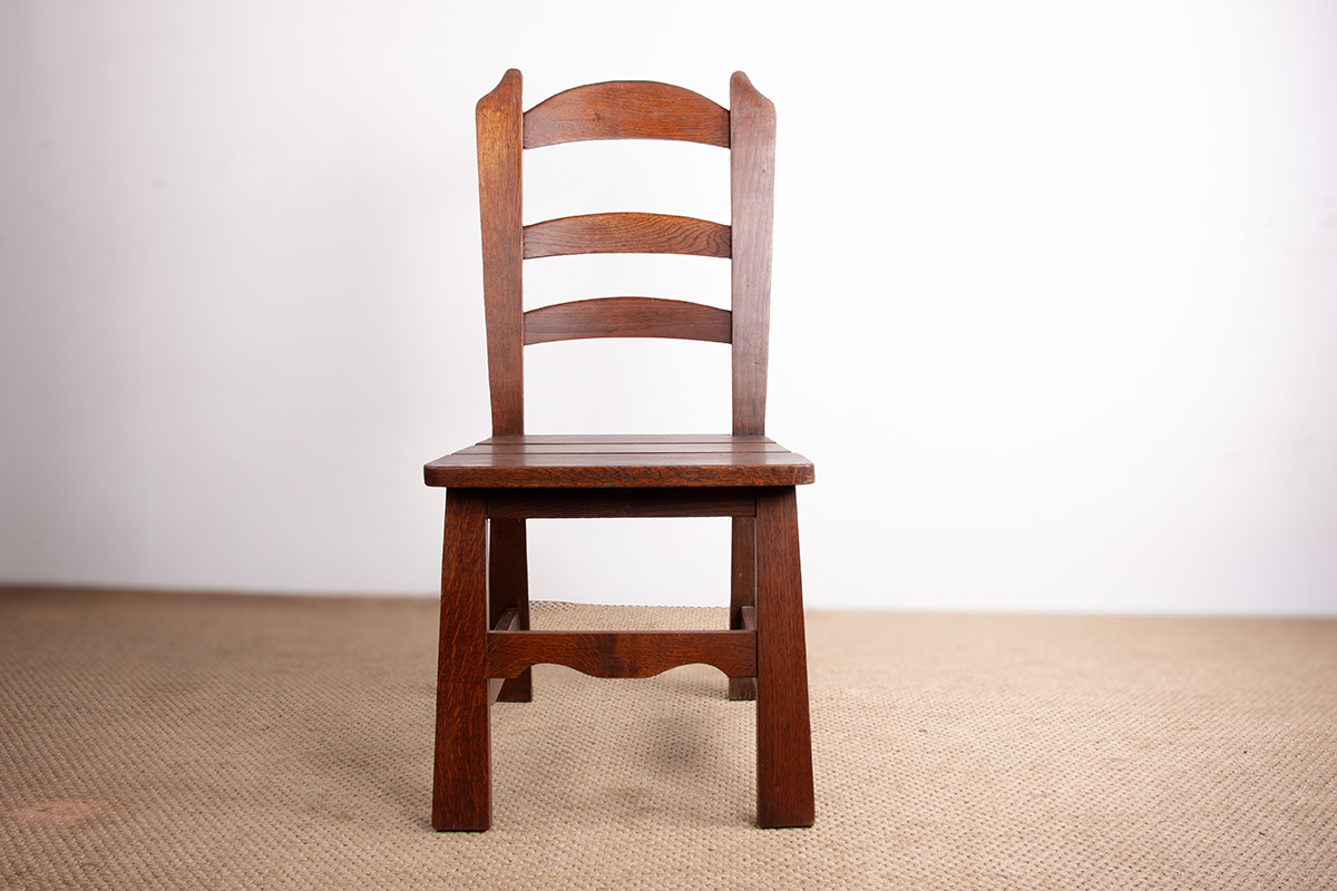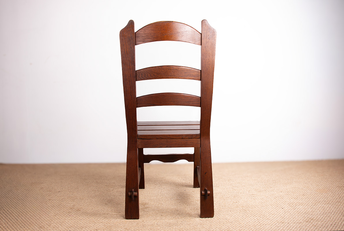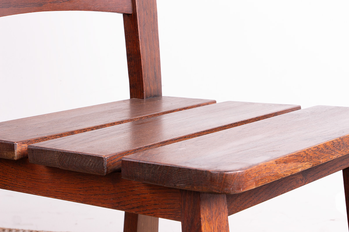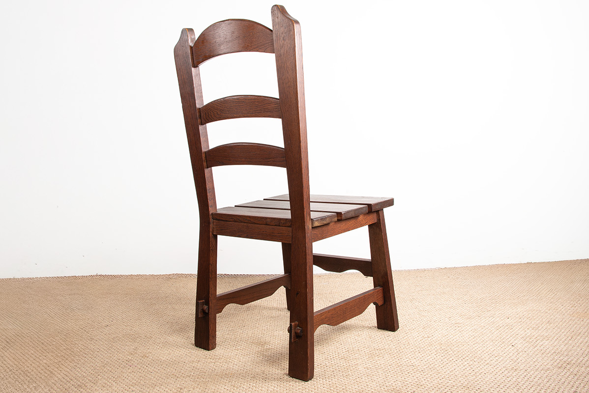Série de 6 grandes chaises Brutalistes en chêne massif 1950, esprit René Gabriel.