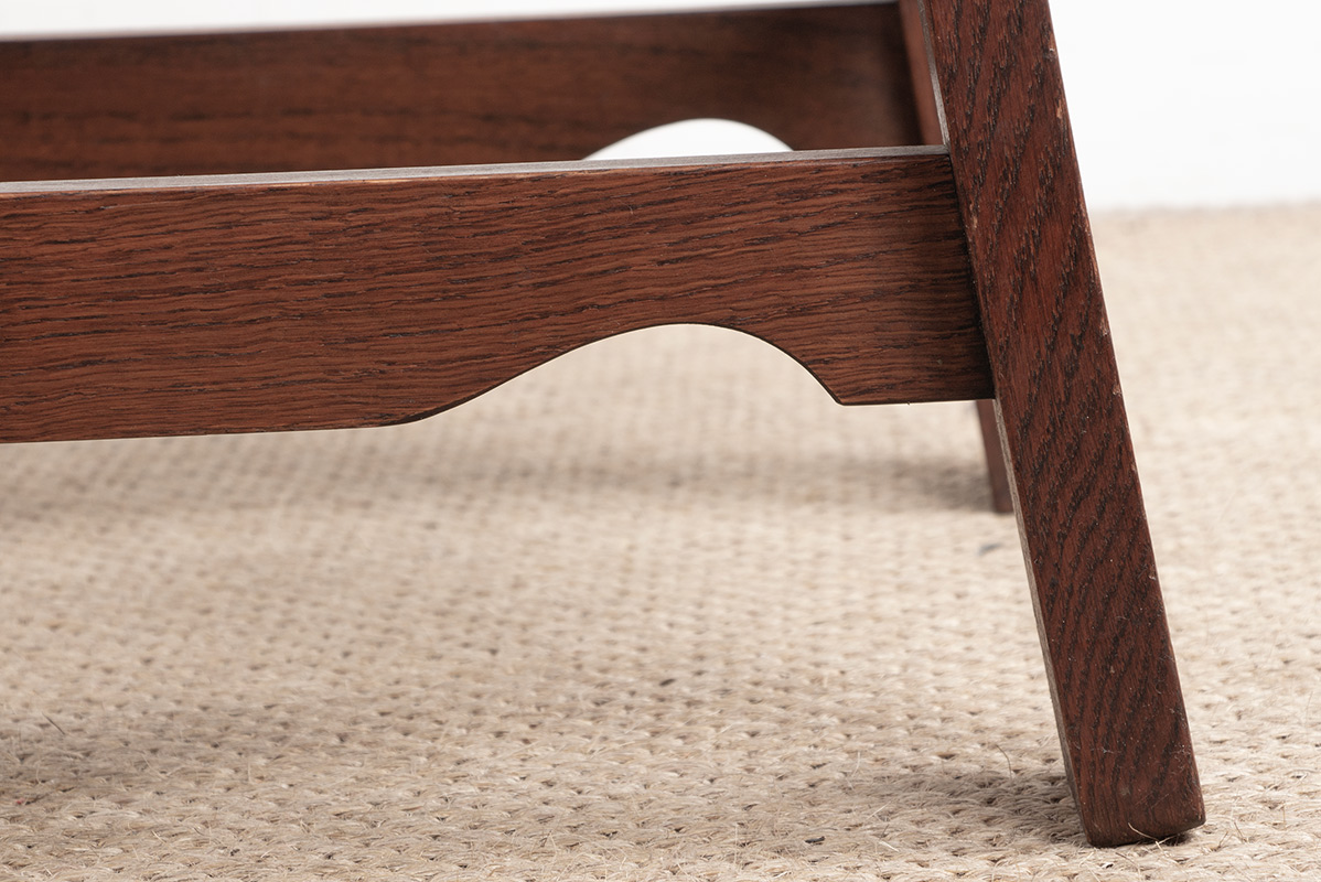 Descriptif : Superbes grandes chaises de style Scandinave-Brutaliste. Idéales pour un environnement rustique ou fermier, ces chaises iront également parfaitement dans un intérieur moderne. Sobres et confortables ces chaises sont de très belles factures. Design très sobre, dans l’esprit de René Gabriel, remarquez le travail d’ébénisterie.