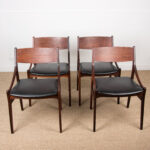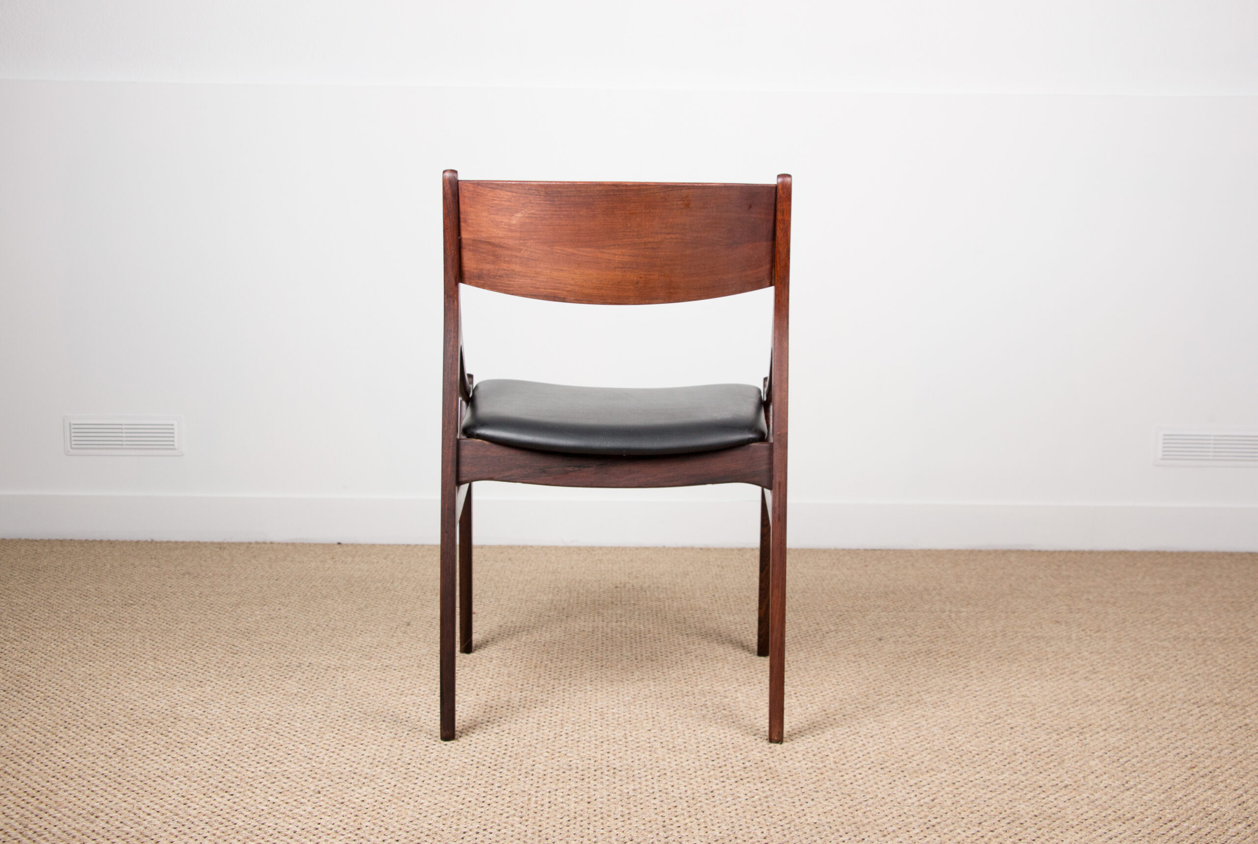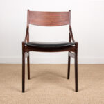Suite de 4 chaises Danoises en Palissandre et skaï noir par Vestervig Eriksen 1960.