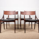 Suite de 4 chaises Danoises en Palissandre et Skaï par Vestervig Eriksen 1960.
