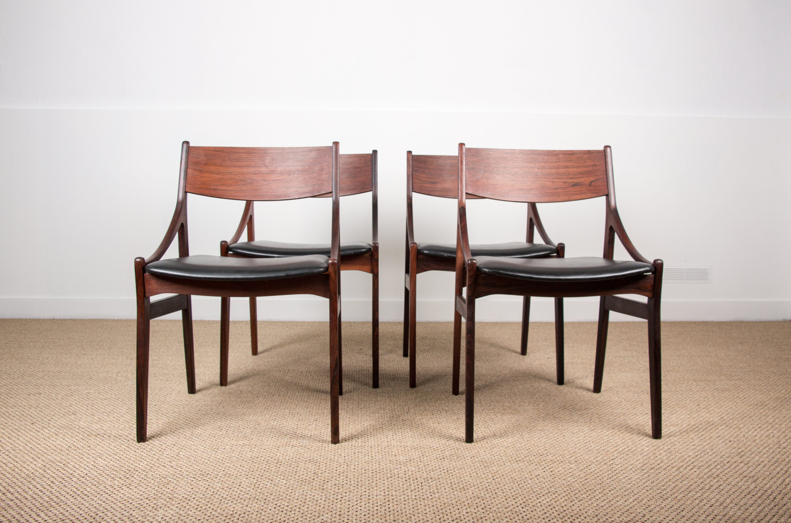 Suite de 4 chaises Danoises en Palissandre et Skaï par Vestervig Eriksen 1960.