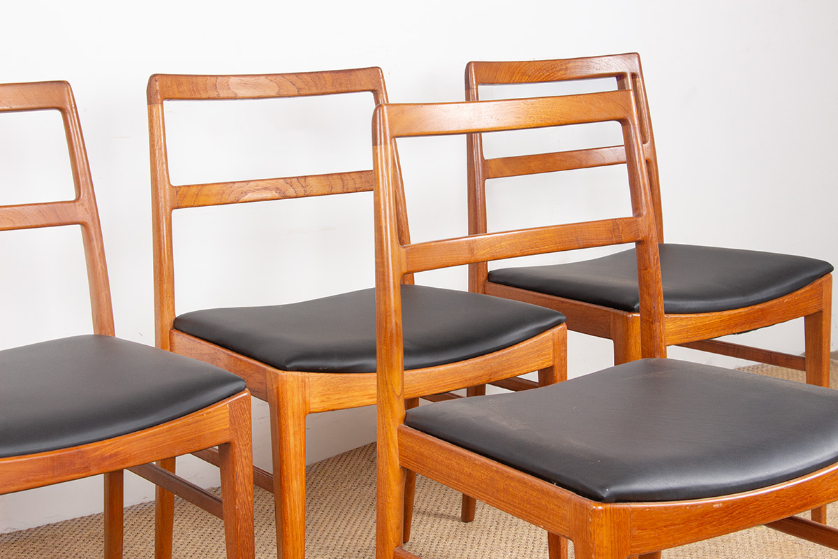 Suite de 4 chaises Danoises en Teck et cuir neuf modèle 430 par Arne Vodder pour Sibast 1960.