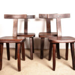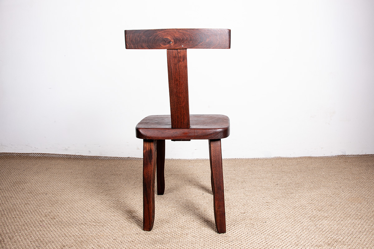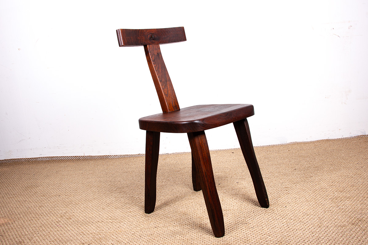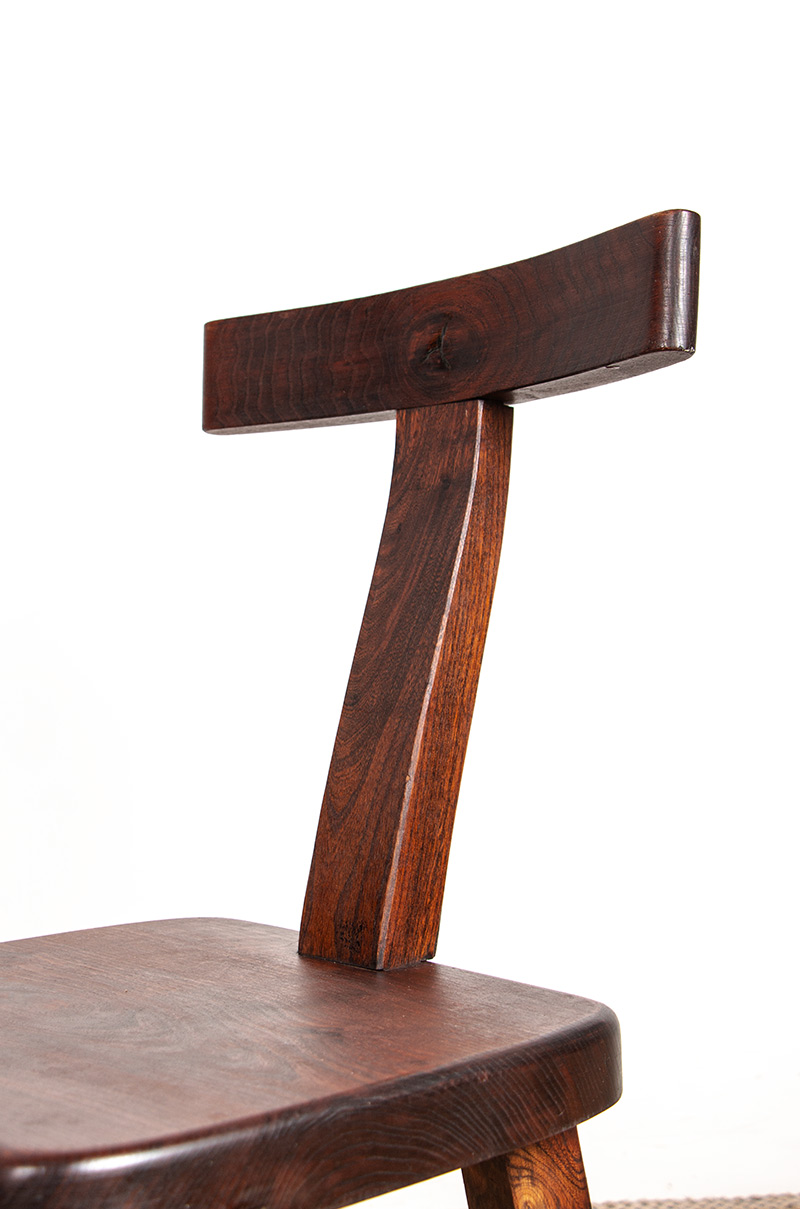 Descriptif : Chaises au superbe Design brutaliste. Chaque chaise est sculptée à la main et assemblée avec des tenons et des mortaises.