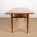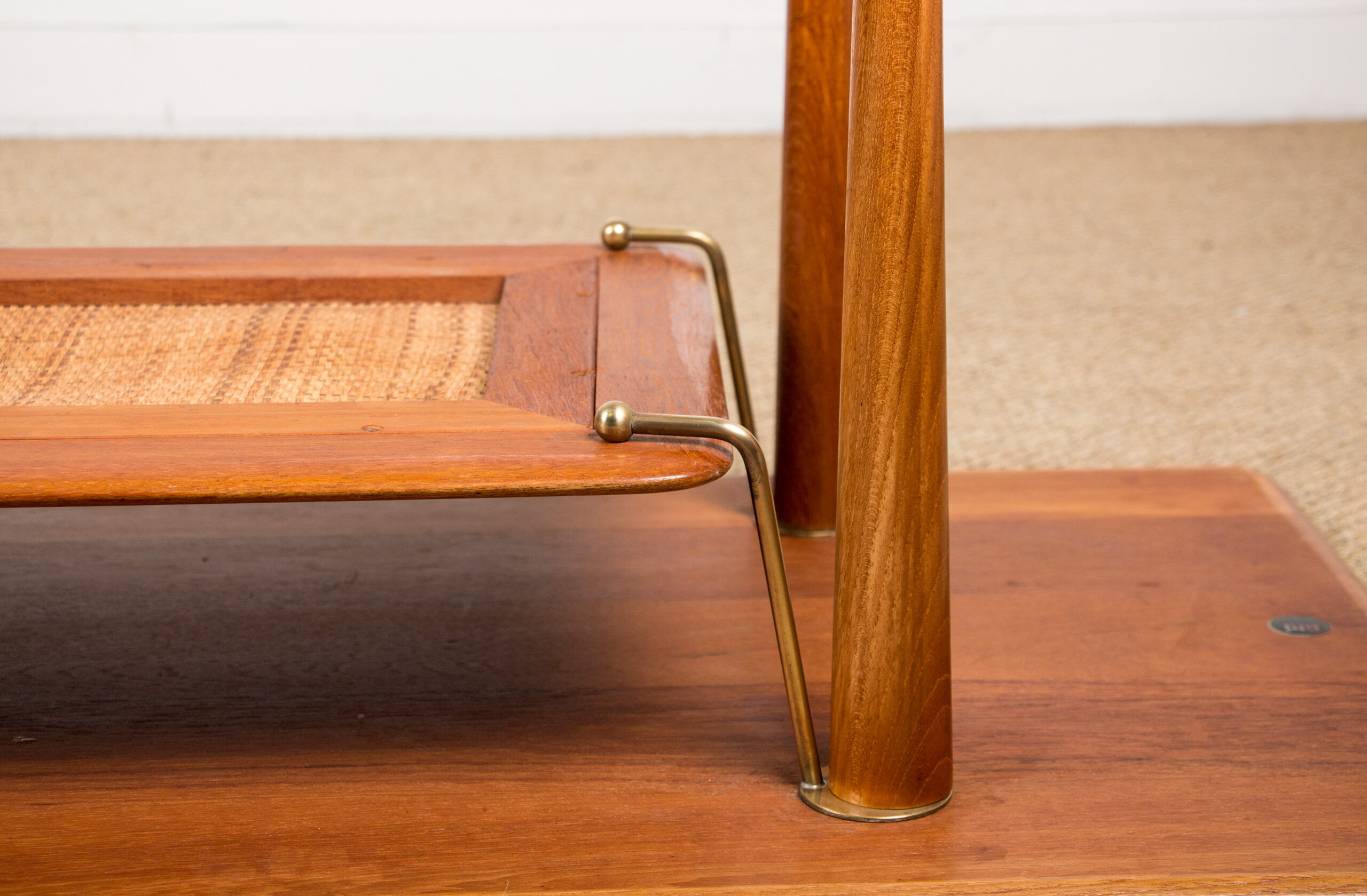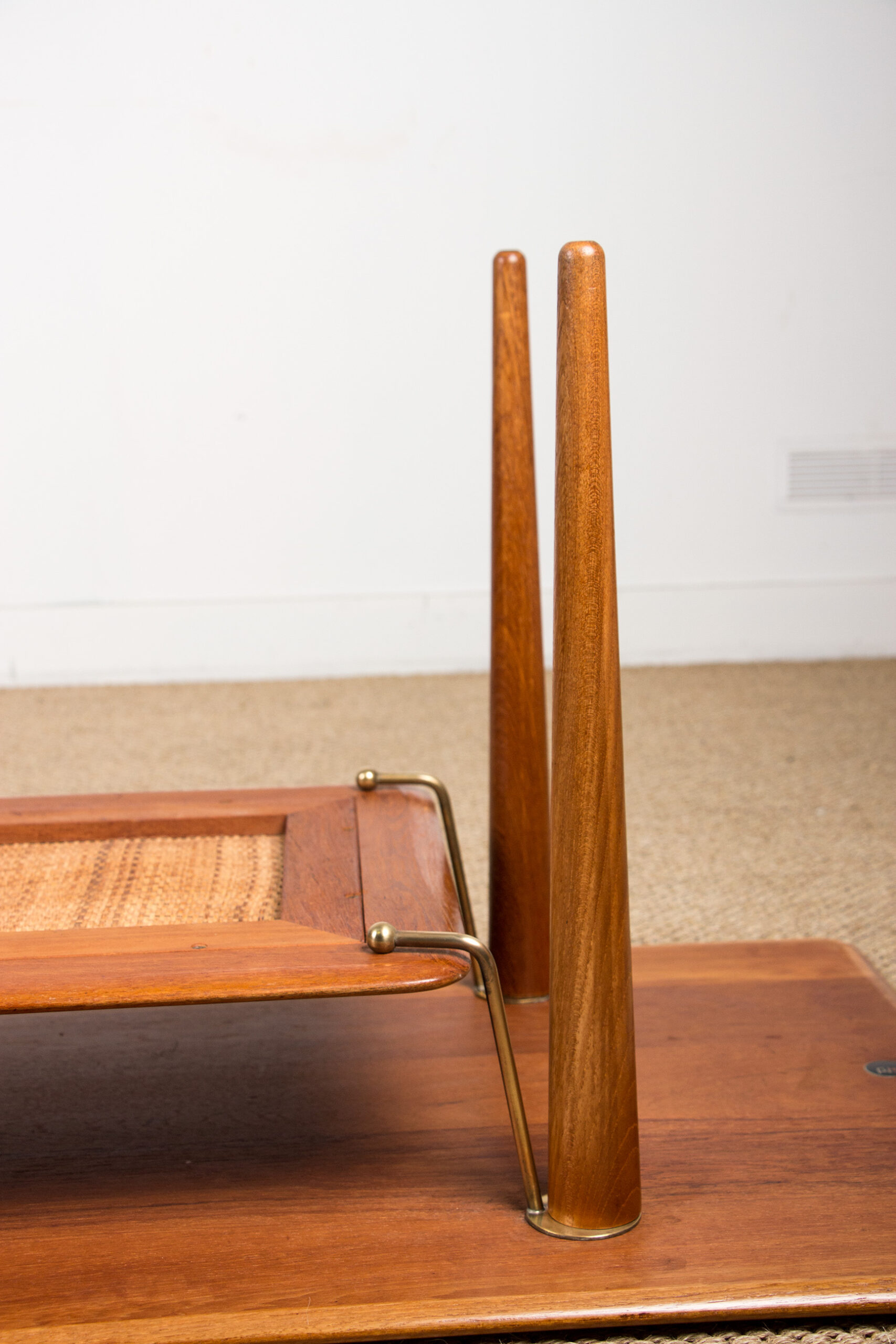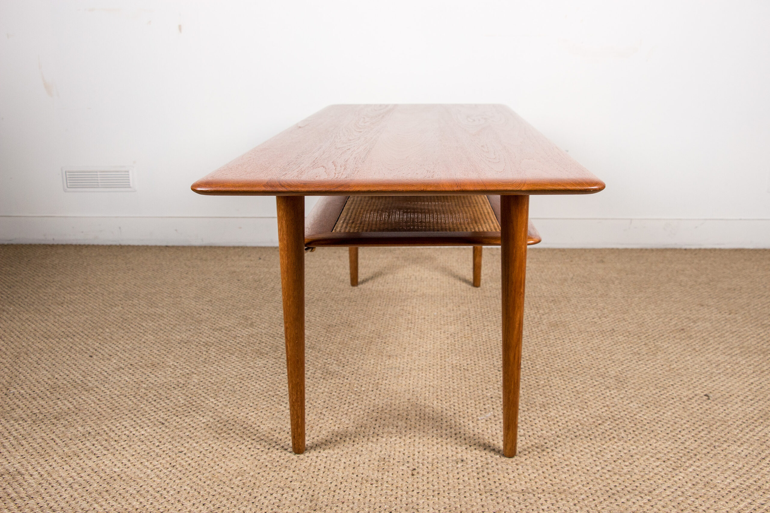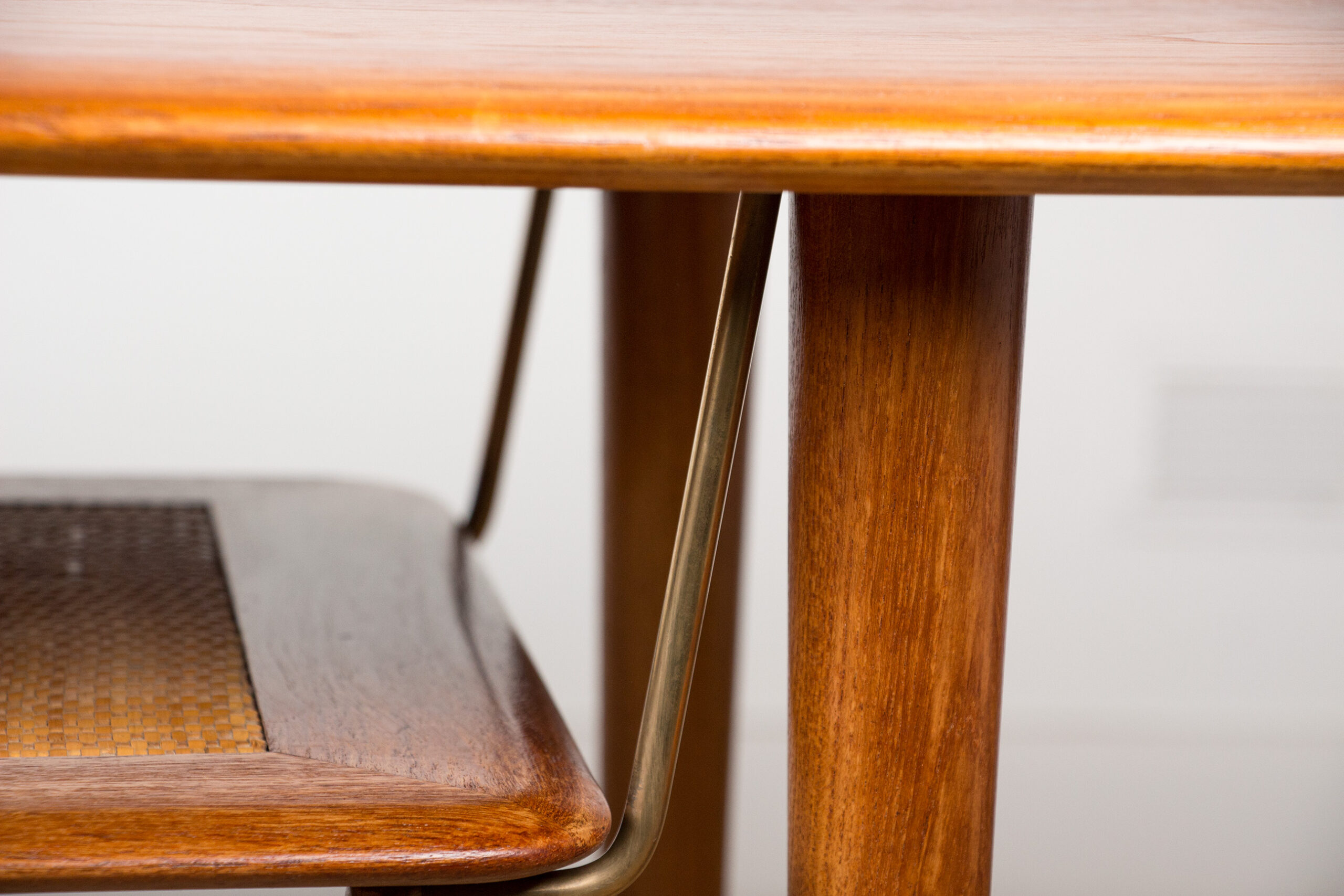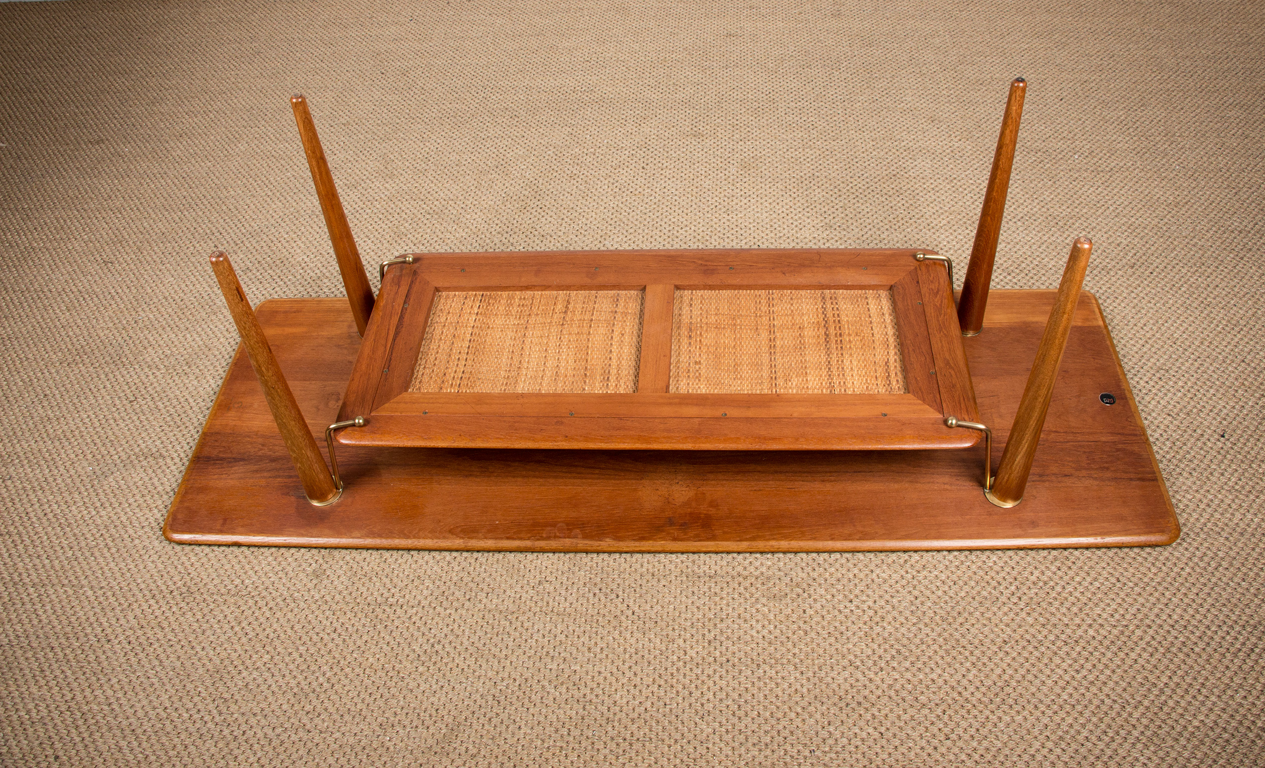Table basse Danoise 2 niveaux en Teck, Cannage et Laiton modèle FD 516 par Peter Hvidt et Orla Moolgard pour France & Son 1956.