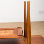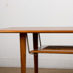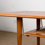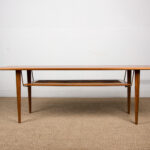 Descriptif : Superbe table basse Scandinave sur 2 niveaux reliés par des tiges en laiton. Charme et élégance. Meuble Iconique du Design Danois. Très belle fabrication, qualité des matériaux remarquable. Meuble répertorié au Design Museum Danemark sous le N°15823.