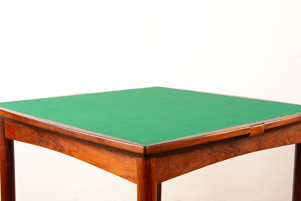 Table Danoise extensible et réversible pour jeux ou repas en palissandre et feutrine par Carlo Jensen pour Hundevad & Co 1960.