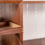 • Un module bar avec une porte battante de bas en haut qui ferme à clé, un tiroir intérieur ajustable, 38 cm de profondeur et 43 cm de haut.