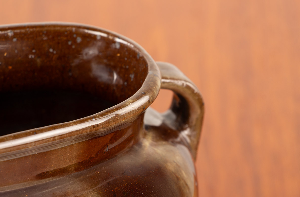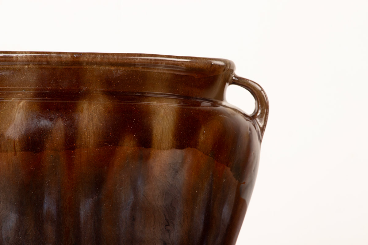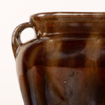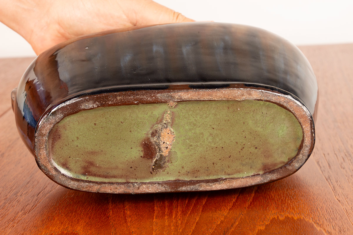 Vase allongé Art Déco en grès flammé et irisé à 2 hanses par Edouard Grégoire 1930.