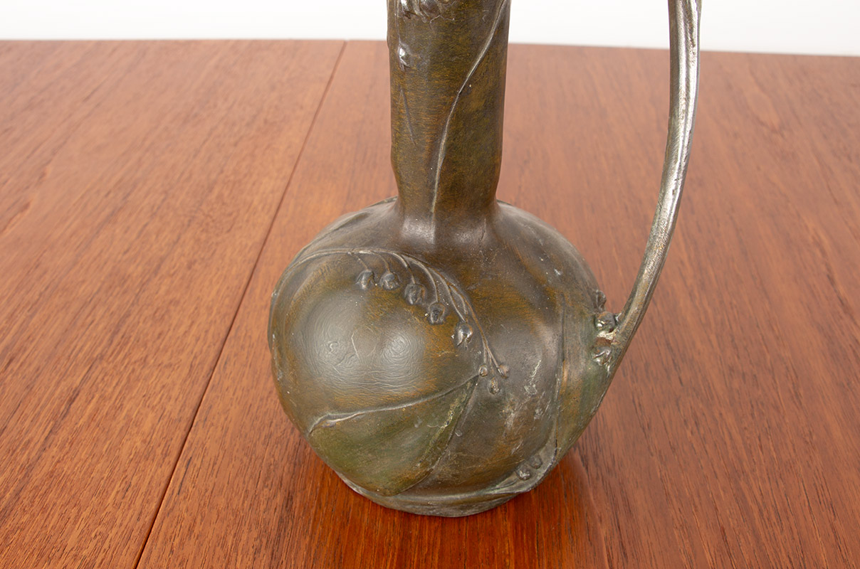 Vase Art-Nouveau en étain massif patiné bronze par Louis Chalon 1910.